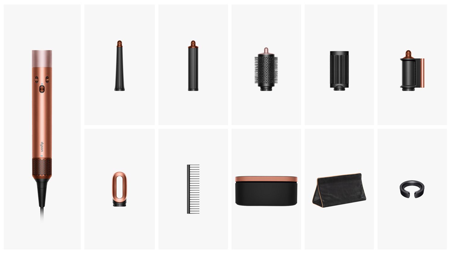 Isompi säilytyskotelo, joka suojaa ja säilyttää Dyson Airwrap Co-anda2x™ -muotoilulaitteesi ja kaikki sen lisäosat.